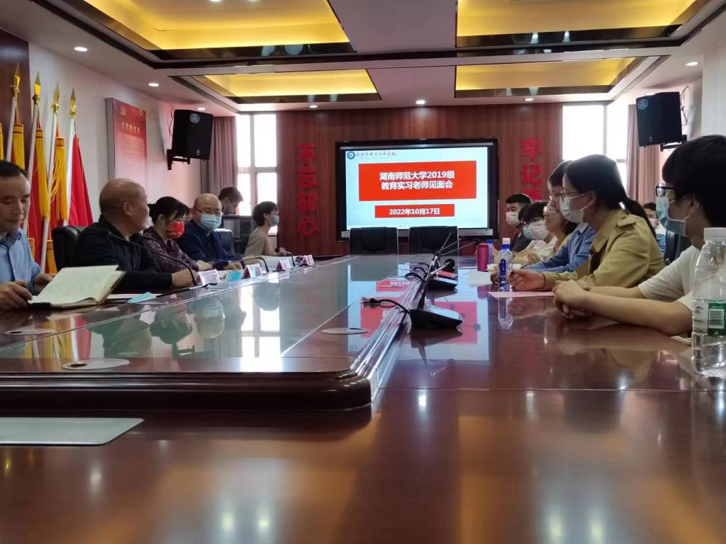 (通讯员 付玉 袁婷婷)2022年10月17日上午8:00,太阳官网19级计算机师范专业7名学生与工设院应用电子师范专业20名学生一道,在付玉教授及工设院张甫、谢婷老师的共同带领下,乘坐学校大巴车启程前往长沙市电子工业学校(以下简称实习学校)进行为期8周的教育实习。上午10点,实习学校在求实楼党建活动室举行教育实习见面会,会议由实习学校教务科主任任飞跃主持,实习学校党委书记周树明、教学副校长邓玉蓉、学生科科长胡坚、教务科副科长吉勇祥,以及高一年级部部长王秀红、高二年级部部长荣红林出席了会议,师大全体实习生和带队老师参加了会议。